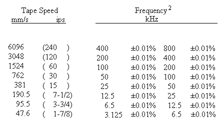 table 3-3). 2 Either set of speed-control signals may be used primarily with wide band systems, but only the higher set of frequencies is recommended for double density systems. When interchanging tapes, care should be taken to ensure that the recorded speed-control signal is compatible with the reproduce system's speed-control electronics. |