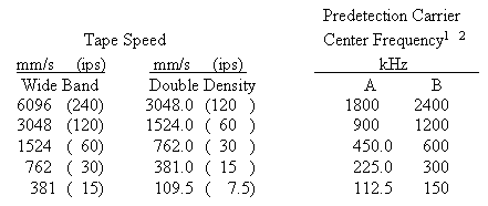 record/playback passband is the carrier center frequency ±66.7 percent. 2 Use center frequencies in column B when data bandwidth exceeds the capabilities of those in column A. |