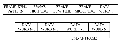8.6 Composite Output The following subparagraphs describe the characteristics for a singular composite output signal. 8.6.1 The composite, continuous output shall conform to the requirements for pulse-code modulation as stated in chapter 4. 8.6.2 The data shall be transmitted or recorded most significant bit first. 8.6.3 The bit rate is dependent on several factors including bus loading and auxiliary inputs and shall be sufficient to preclude any loss of data. 8.6.4 The order of bus words must remain unaltered except in the case of a buffer overflow. 8.6.5 The frame length shall be fixed using fill words as required and shall be > 128 words and < 256 words including the frame synchronization word. 8.6.6 The frame synchronization word shall be fixed and 24 consecutive bits in length. The pattern, also shown in table C-1, appendix C, is 1111 1010 1111 0011 0010 0000 (FAF320 hex). 8.6.7 A frame structure employing frame time is recommended but optional. If frame time is used, the frame structure shall consist of the frame synchronization word, followed by the high order time word, followed by the low order time word, followed by the microsecond time word, followed by the data words from all sources making up the composite signal up to the frame length specified in subparagraph 8.6.6 (see figure 8-3). If frame time is not used, the frame synchronization word shall be followed immediately by the data words. ![]() |