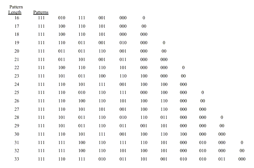 TABLE C-1. OPTIMUM FRAME SYNCHRONIZATION PATTERNS FOR PCM TELEMETRY